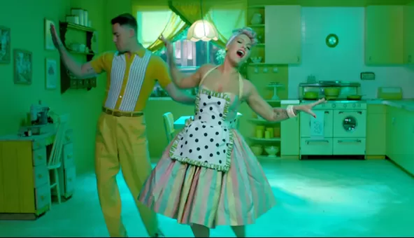 El video, ambientado en los años 50's, tiene como protagonistas a la siempre irreverente Alecia Moore - Pink - y a Channing Tatum como una peculiar parejita que como quien se desestreza, bebe algunos martinis, baila mucho y hasta invierte de atuendos. #RelationshipGoals.