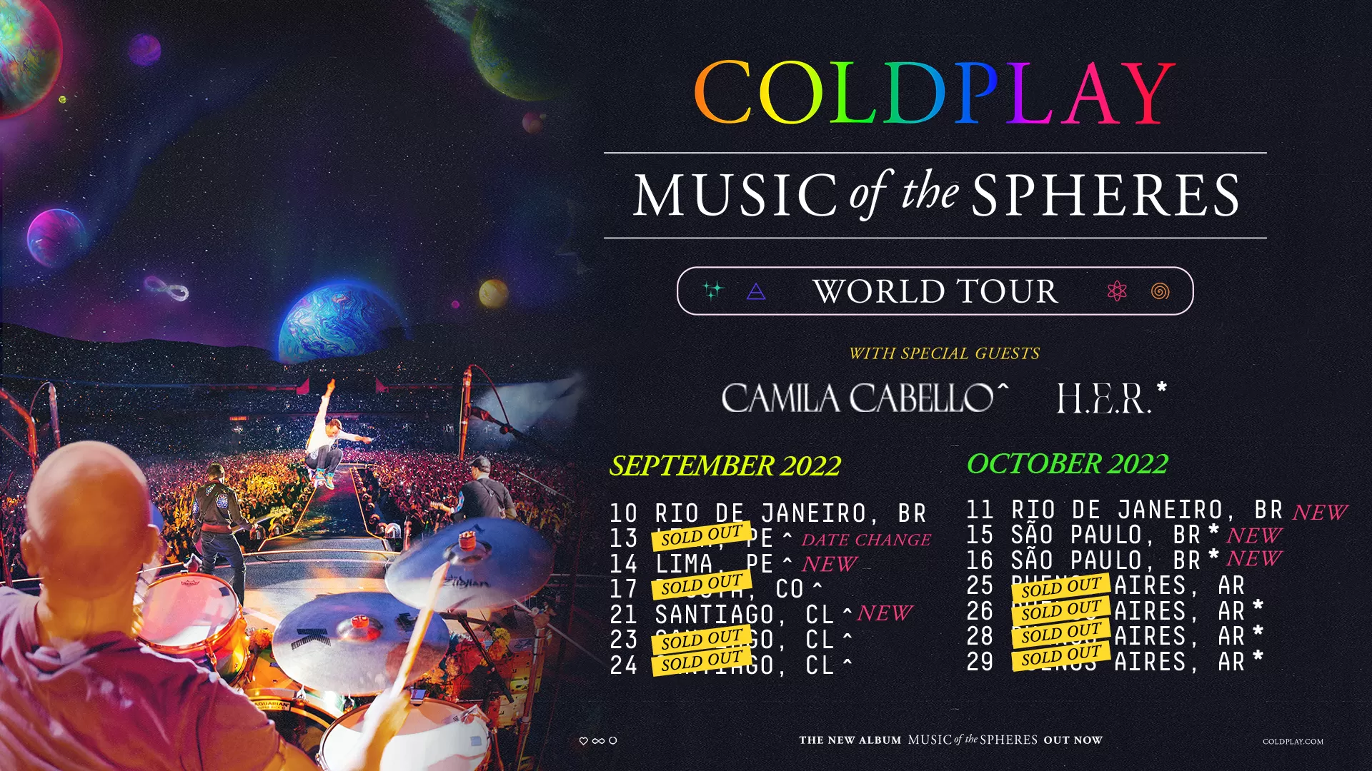 A través de un comunicado oficial, Coldplay ha modificado su lista de conciertos, ha agregado nuevas fechas y modificado algunas de las que ya tenía para poder complacer a la gran demanda de sus fans sudamericanos que agotaron las entradas para sus recitales.