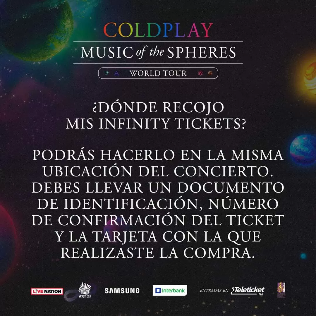 Sin embargo, una última opción estará disponible a partir del 9 de septiembre según lo ha comunicado Artes Perú, productora a cargo de ambas presentaciones en nuestro país. Como tal vez te has enterado y como ha sucedido en otras paradas de su gira, Coldplay pone a disposición los llamados "Infinity Tickets", unas entradas muy especiales con características particulares.