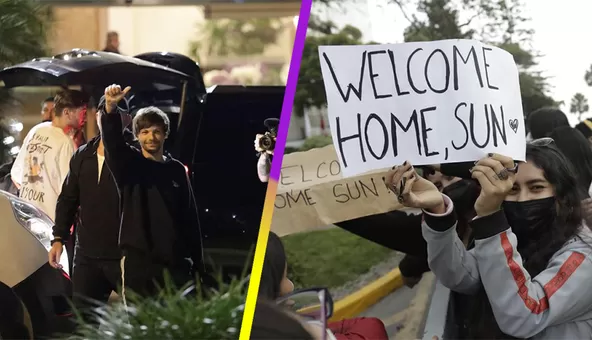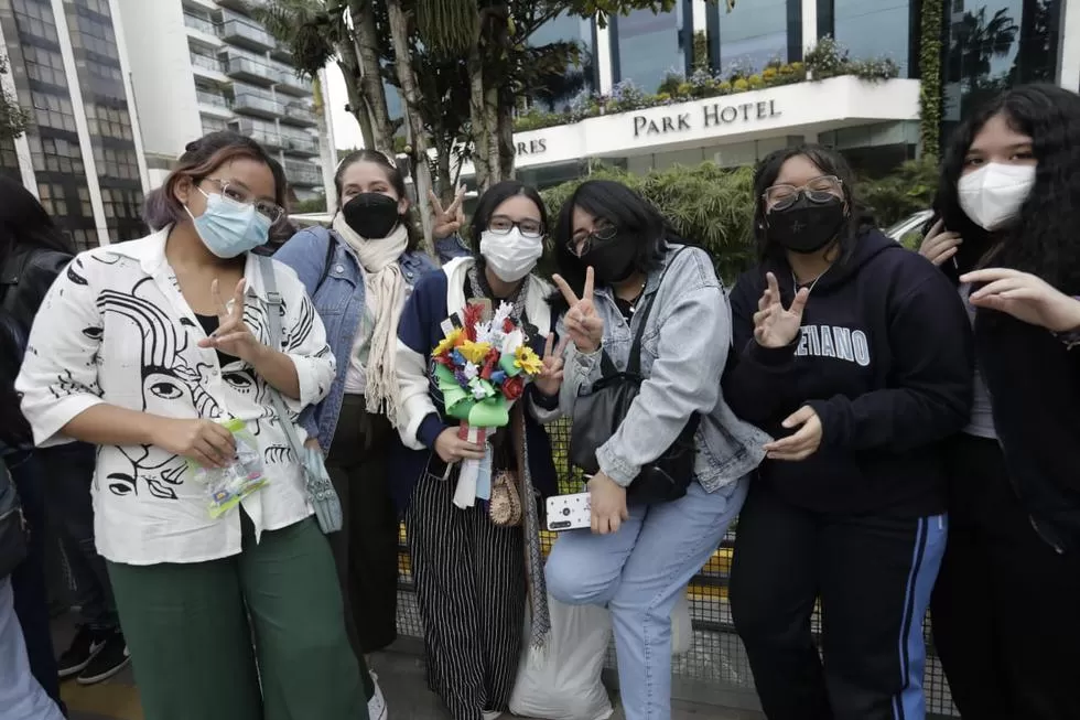 Por otro lado de la ciudad, en el distrito de Miraflores, otros cientos de fanáticos recibieron al artista durante su llegada al hotel Miraflores Park, de esta manera: