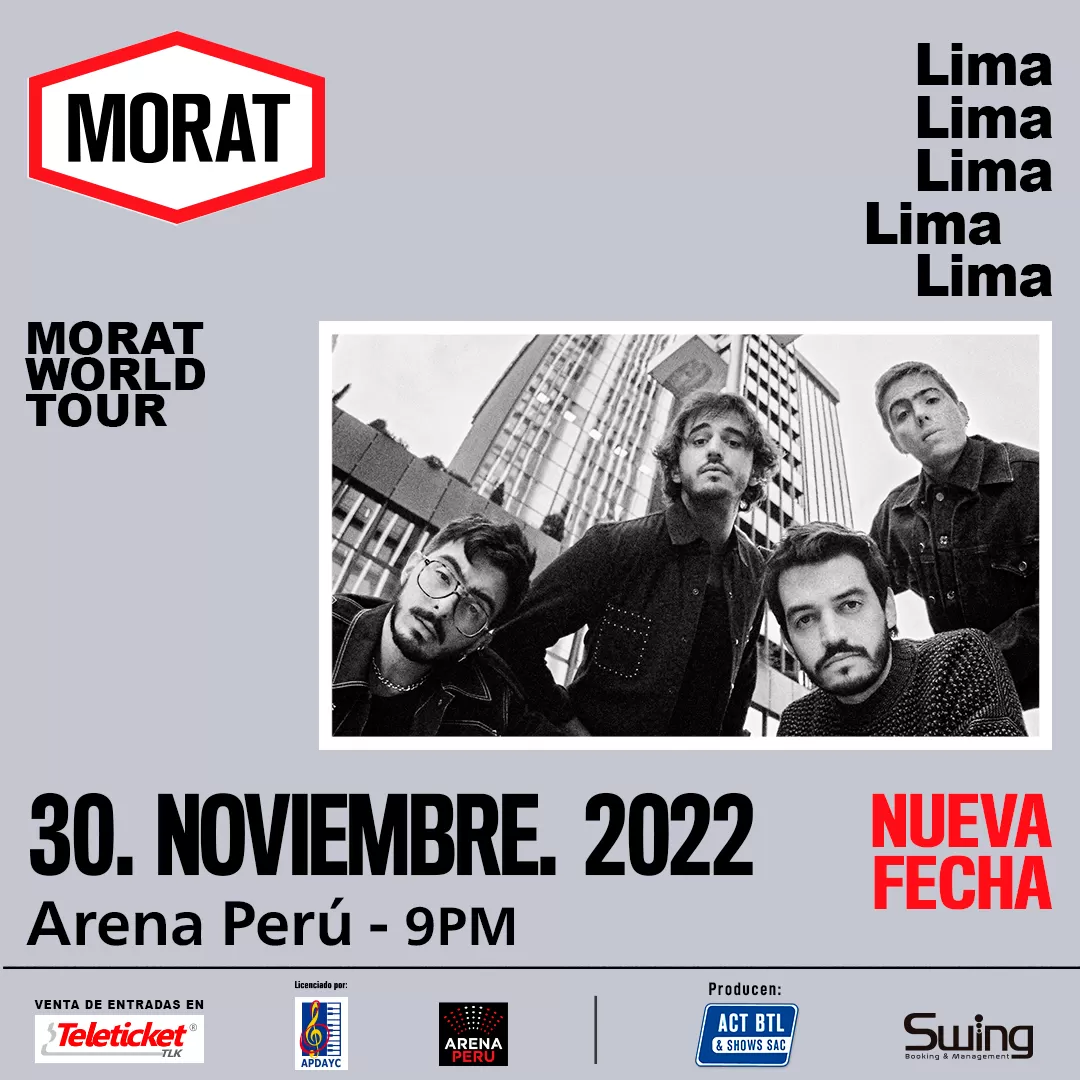 Después de agotar todas las entradas para sus conciertos en Lima y Arequipa, la banda colombiana confirma una segunda fecha en Lima, a pedido de los fans peruanos. Morat es una de las bandas más populares de Latinoamérica y llega a Perú en medio de una tremenda expectativa. La nueva fecha será el 30 de noviembre en Arena Perú y las entradas estarán a la venta desde mañana viernes a las 9am por las plataformas de Teleticket.
