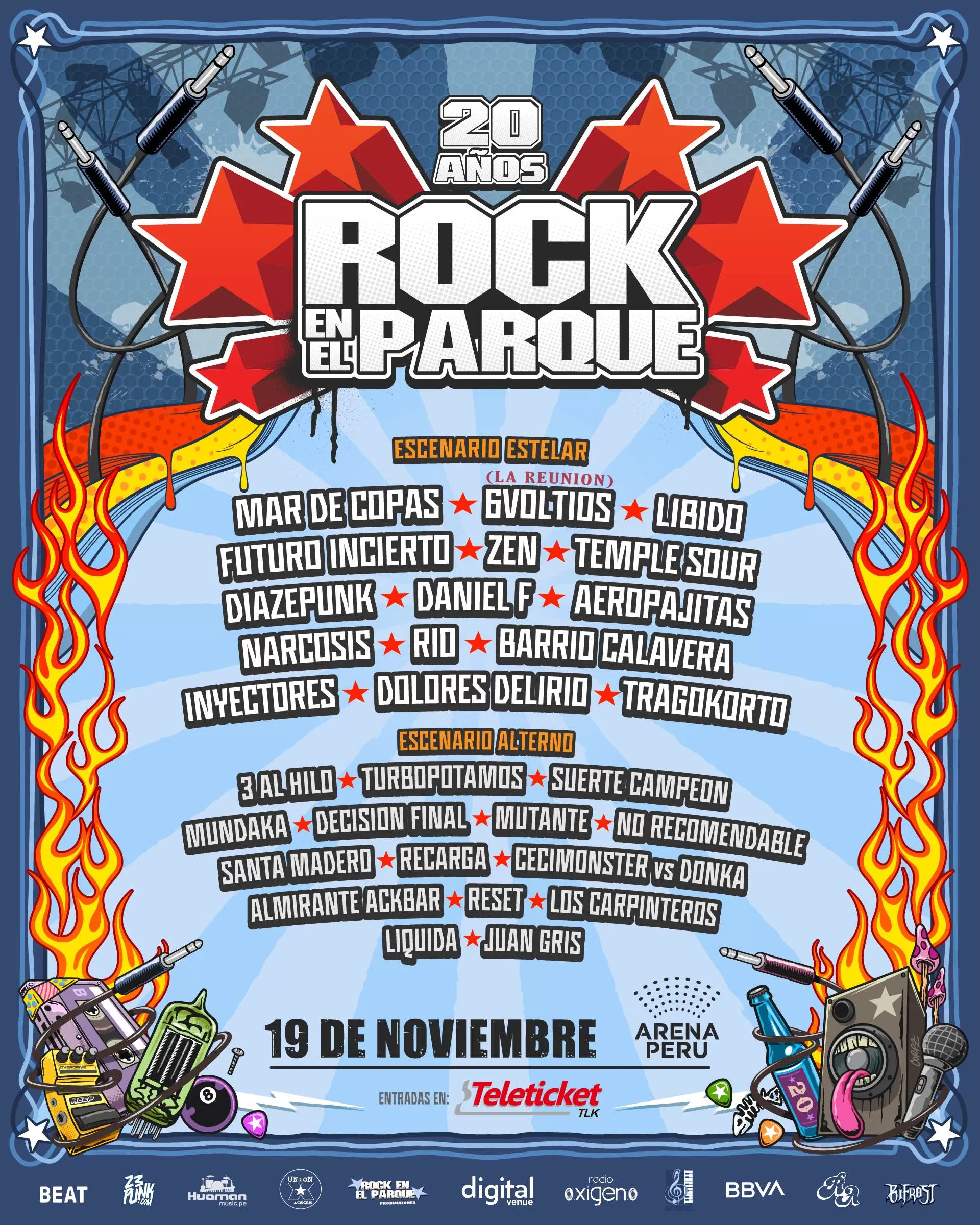 Escenario Estelar: Mar de Copas, 6 Voltios (La Reunión), Libido, Futuro Incierto, Zen, Diazepunk, Daniel F, Aeropajitas, Narcosis, Rio, Barrio Calavera, Temple Sour, Inyectores, Dolores Delirio, y Tragokorto.