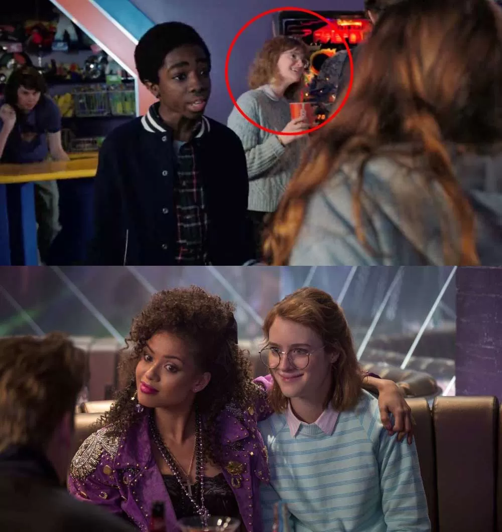 13. Un fan detectó que la serie hacía referencia al premiado episodio de ‘Black Mirror’, San Junípero. Cuando Lucas y Max están en el arcade de Hawkins, al fondo se ve a un extra con chompa celeste y gafas, muy similar a la protagonista de dicho capítulo.