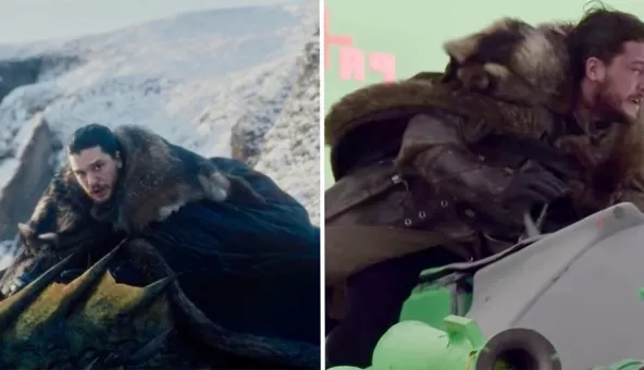 Una parte del video muestra la experiencia completa de Kit Harington al filmar uno de los mejores momentos de su personaje: Jon Snow montando un dragón por primera vez.