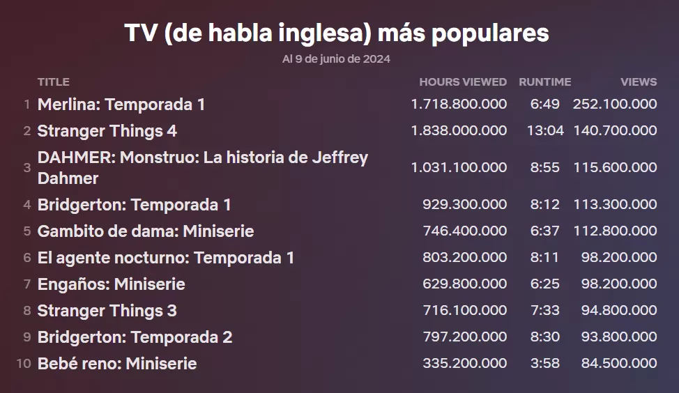 El ránking histórico de Netflix se ha actualizado y hay una nueva serie en el apartado de TV de habla inglesa.