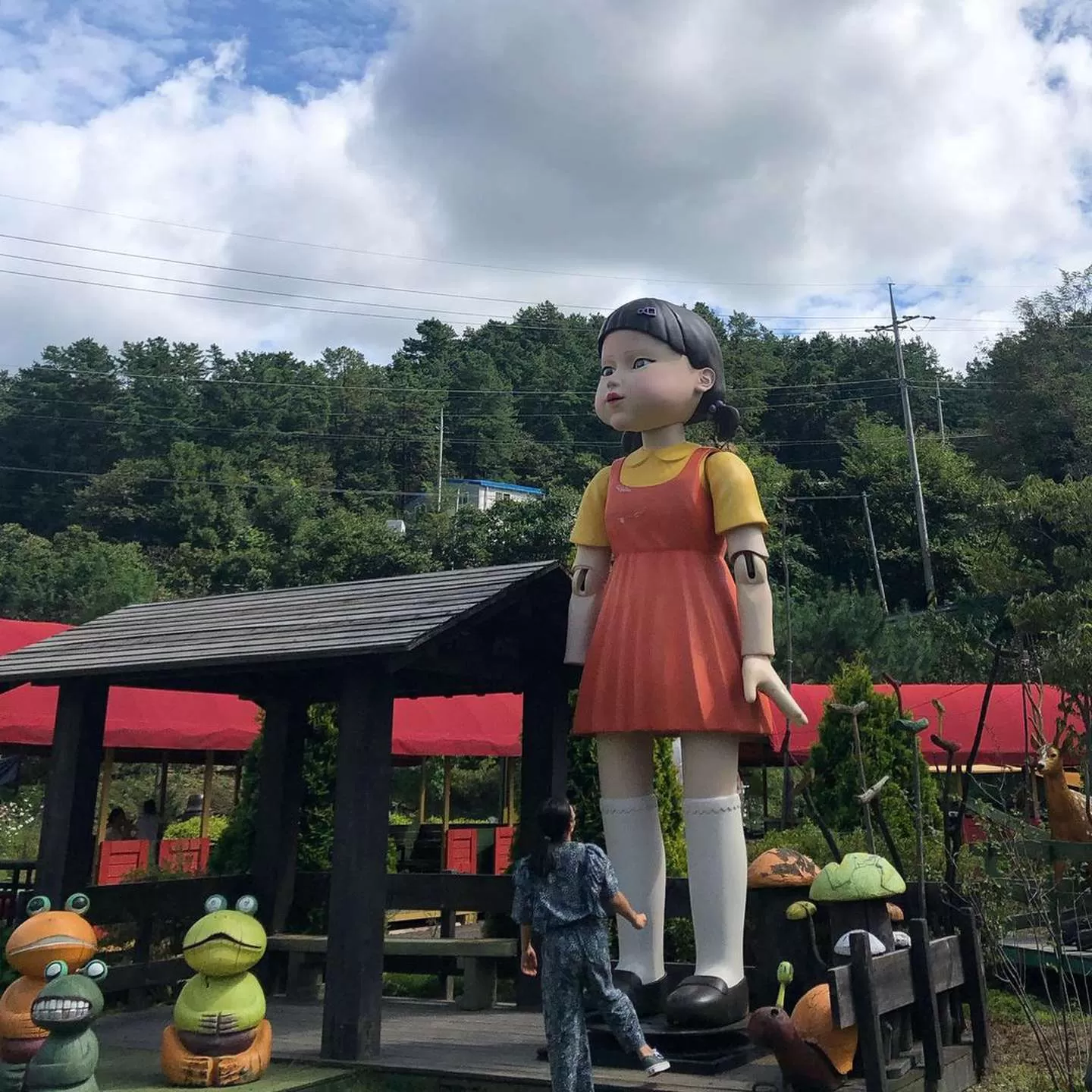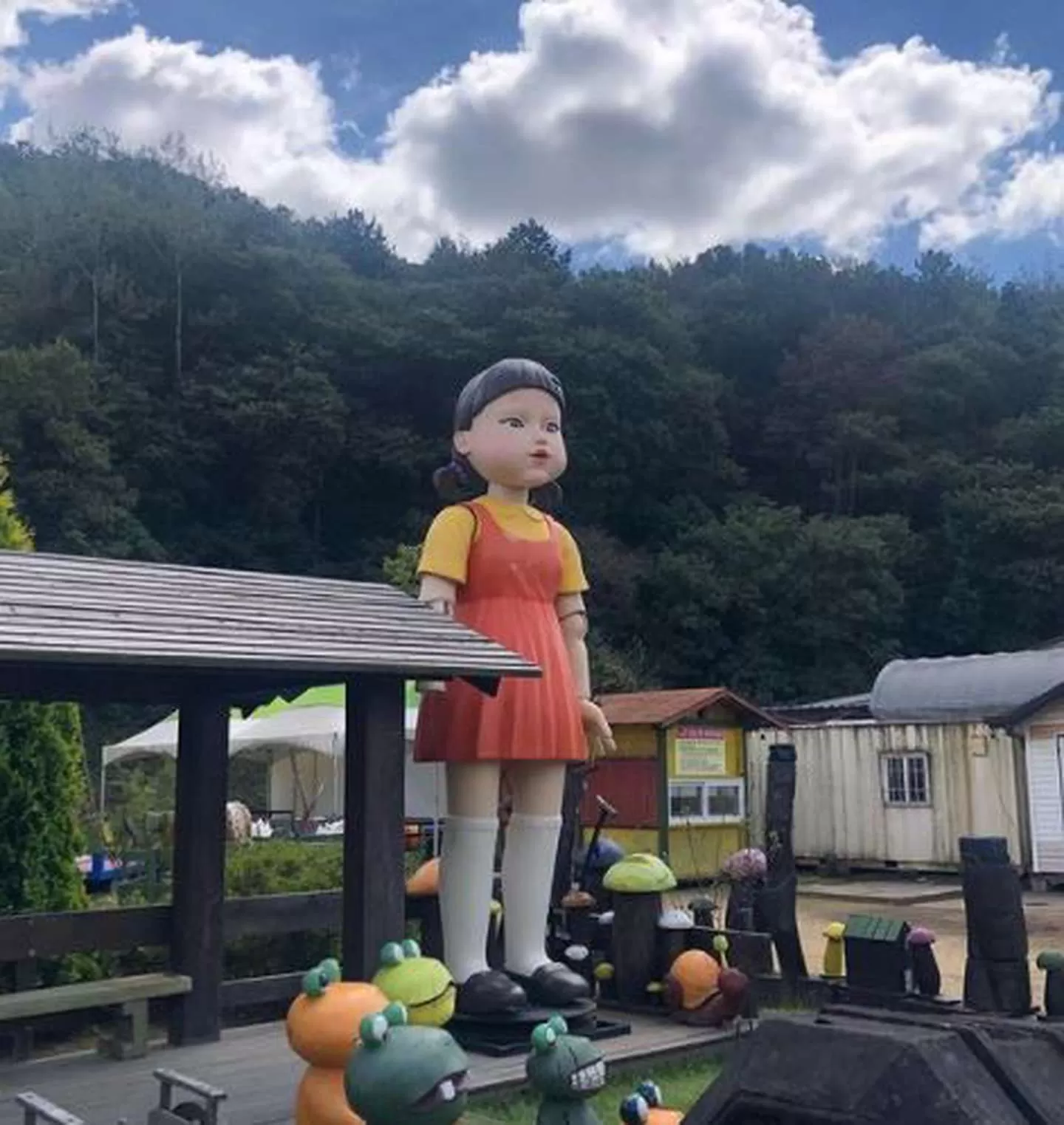 Hay muchos rumores de su procedencia. Algunos dicen que es real, como sostiene el sitio coreano The Smart Local, y que está ubicada en el condado de un museo de carruajes de Jincheon, en el norte de Chungcheong, mejor conocido como Macha Land. Según la fuente, la producción de ‘El Juego del Calamar’ tomó prestada la muñeca para rodar las escenas de la primera competencia y luego la devolvieron. Hay imágenes en diferentes perfiles de Instagram en las que se ve otras en las que no está y algunas en las que está envuelta en nailon y papel.