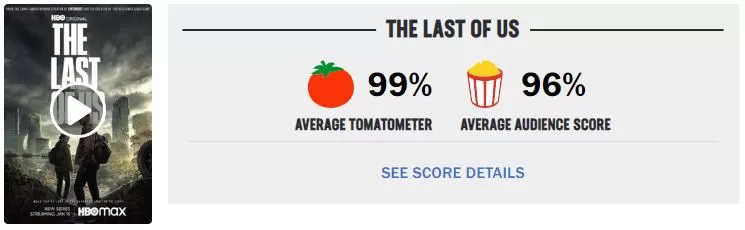 El día viernes también se liberaron las reseñas de 'The Last of Us', donde la prensa especializada le otorgó una calificación casi perfecta en el portal Rotten Tomatoes. Algunos críticos señalaban que la serie era la mejor adaptación de videojuegos que ha existido, mientras que otros resaltaban la bien lograda historia, que llega acompañada de magníficas interpretaciones así como de locaciones catastróficas muy similares a las que exploramos en el juego.