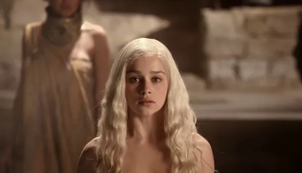 Más allá de sus desnudos sexuales, ella también tiene una icónica escena en la que se despoja de sus ropas y tiene que ver con el nacimiento de sus dragones. La actriz asegura además que ha recibido muchas críticas por las escenas sexuales de la serie y es por ello que "el nacimiento de sus dragones" fue una escena muy importante para ella: