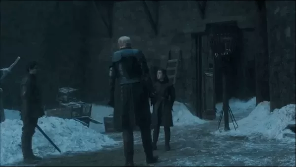 Ubiquémonos en la pelea entre Arya Stark y Brienne. Arya le dice a Brienne: ‘Juraste servir a las dos hijas de mi madre’ y algunos se dieron cuenta que una silueta de una mujer pasó por la parte de atrás. La verdad es que - a título personal - parece un extra cualquiera, pero muchos han señalado que todo concuerda con la fisionomía de Lady Catelyn, fallecida en la Sangrienta Boda Roja. ¿Cómo podría haber vuelto?