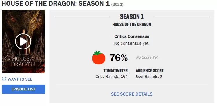 Por su lado, Entertainment Weekly, otro de los portales líderes en entretenimiento, considera que si bien tuvo sus fallas y tal vez una carencia de personajes que atraigan la atención más allá de los Targaryen, cierran su reseña con: "El dragón no se eleva de inmediato, pero ninguna casa se construyó en un día", antes de poner una calificación B.
