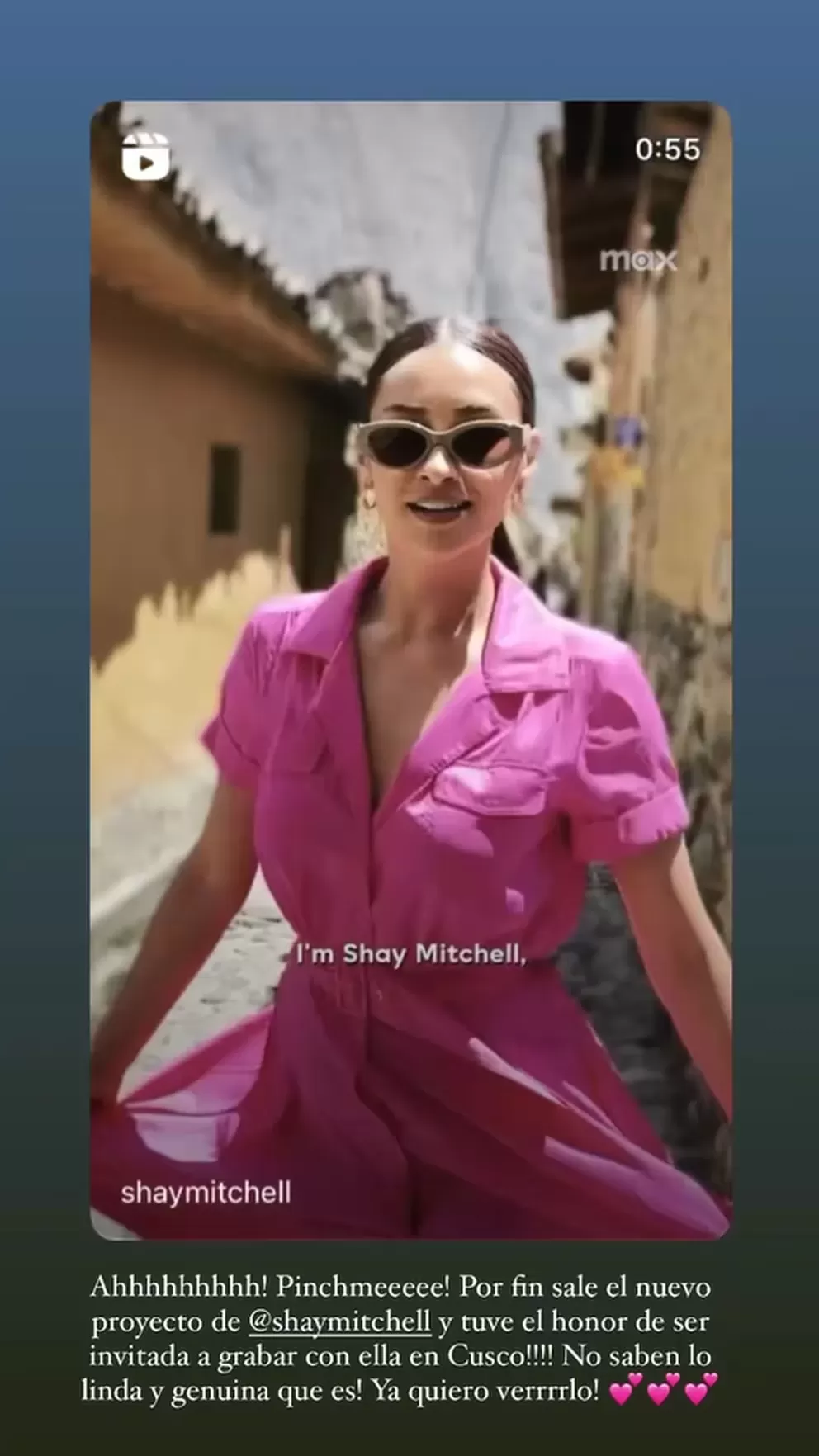 “Por fin sale el nuevo proyecto de Shay Mitchell y tuve el honor de ser invitada a grabar con ella en Cusco ¡No saben lo linda y genuina que es! ¡Ya quiero verlo!”, compartió la peruana en su cuenta de Instagram.