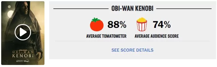 El porcentaje que le otorga la crítica está por encima que el otorgado a 'El Libro de Boba Fett' (68%) pero por supuesto, no pudo superar a la calificación de 'The Mandalorian' (93%).Este porcentaje positivo, se ha visto reforzado por haber traído de vuelta a un personaje querido y una fórmula de la vieja escuela, aunque sobre esto último, hay quienes creen que la franquicia aún tiene temor de apostar por personajes y tramas novedosas. De todas formas, la magnética actuación de Ewan McGregor y el tono más oscuro de esta serie ha logrado cautivar a los críticos en sus primeros episodios.