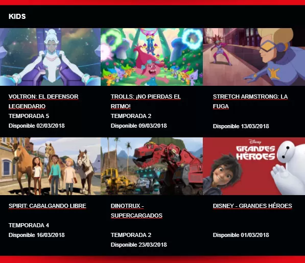 Finalmente, los más pequeños pueden disfrutar de una nueva temporada de Trolls, Grandes Héroes y la quinta temporada de Voltron: El Defensor Legendario.