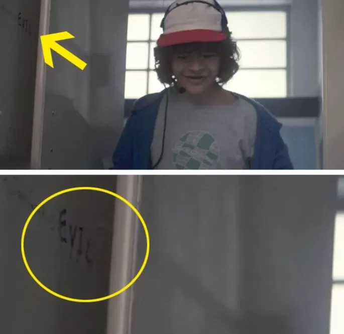 9. La palabra "malvado" está claramente escrita en el baño cuando Dustin finalmente encuentra a Dart.