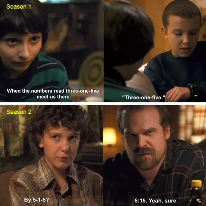 8. Once cuenta el tiempo de una manera "extraña", pero es la forma como Mike le enseñó en la Temporada 1.