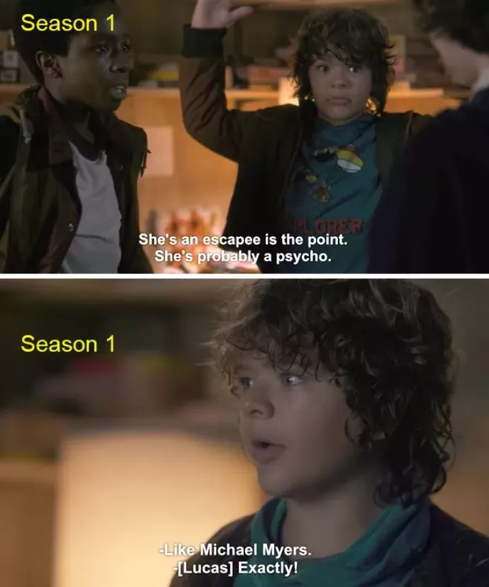 6. En la temporada 1, Lucas y Dustin bromean sobre cómo creen que Once podría ser un paciente mental que se escapó, como el personaje de Halloween de Michael Myers. Irónicamente, en la temporada 2, Max está vestida como Michael Myers.