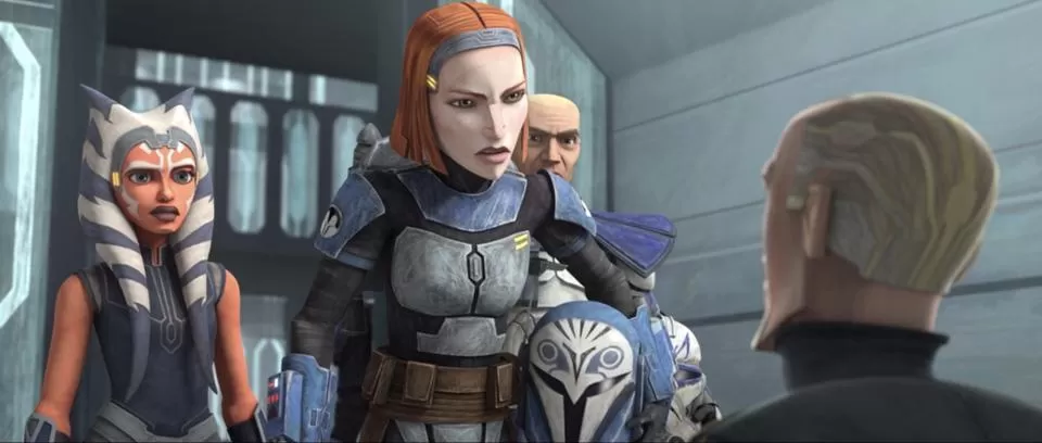 El personaje de Bo-Katan apareció por primera vez en el universo de Star Wars en 2012, en 'Star Wars: La guerra de los clones'. Los fans la conocieron como una guerrera tenaz, hermana de la Duquesa Satine y mano derecha de Pre Vizsla en el grupo disidente militarista la Guardia Letal. En la serie animada, la actriz Katee Sackhoff prestaba su voz al personaje, cuyo arco continuó expandiéndose en la serie animada de 2014 Star Wars Rebels.