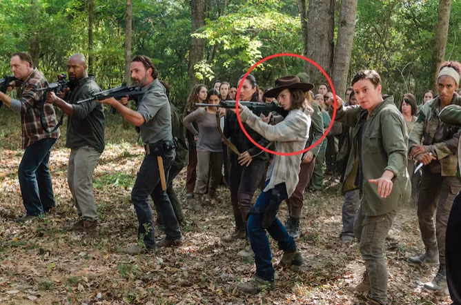 De las imágenes fijas, parecía un error obvio. Pero cuando le preguntamos al productor ejecutivo, David Alpert sobre el incidente en el Comic-Con de Nueva York, lo negó. Alpert dijo que no creía que Carl apuntara con el parche y descartó los tweets como "bastante divertidos".