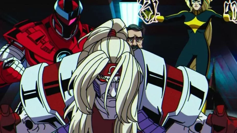 Omega Rojo aparece por segunda vez en la serie, después de su cameo en el episodio 8 en el que es liberado de su cápsula de hibernación. Junto a los villanos Dínamo Carmesí y Darkstar, defienden a un político de un grupo de Centinelas Prime.