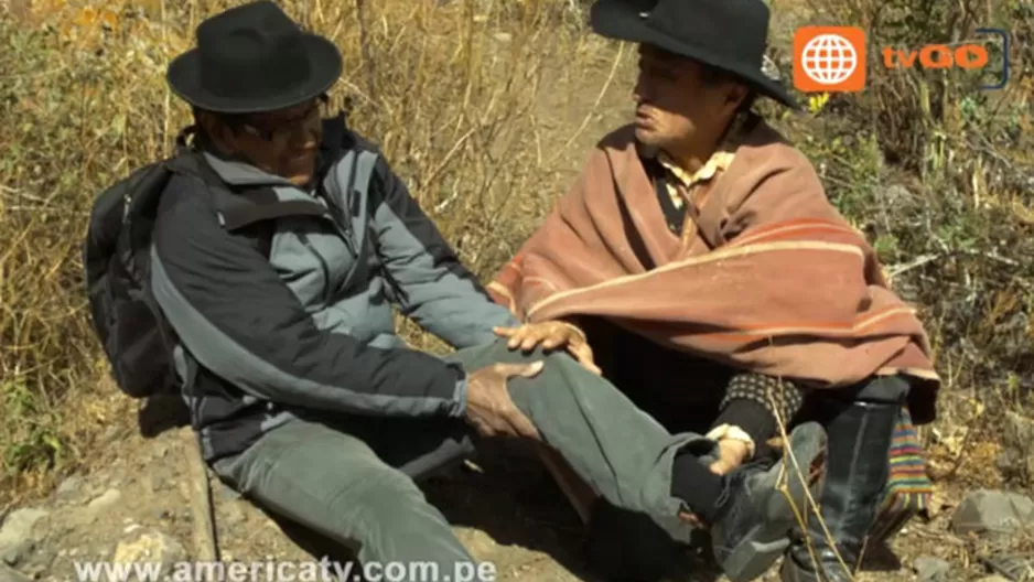 Mientras recorría el valle del Colca, don Ciro tuvo un pequeño accidente y uno de sus pies quedó herido, siendo ayudado por su compañero Zacarías.