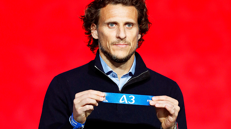La rusa María Komándnaya, la consorte de Gary Lineker en la ceremonia del sorteo, presentó el ensayo con la ayuda del uruguayo Diego Forlán, una de las ocho leyendas del fútbol elegidas para sacar las bolas calientes de las urnas.
