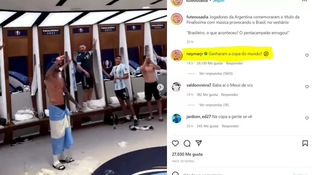 En una publicación en Instagram, el astro brasileño se preguntó si Argentina "¿ganaron la Copa del Mundo?", esto por la celebración en el vestuario en Wembley.