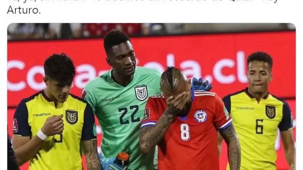 "Ya, ya, sin llorar. Te traemos un recuerdo de Qatar Rey Arturo", señaló en sus redes sociales. Compartió también una fotografía del futbolista lamentándose rodeado de jugadores ecuatorianos, incluído Byron Castillo.