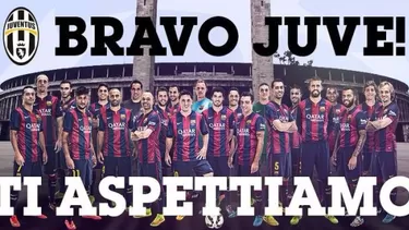 "Desde Barcelona felicitamos a la Juventus por la conquista del título de Copa. Nos veremos en Berlín", dice el mensaje, acompañado con una imagen del elenco azulgrana que a su vez lanza otro: "Bravo Juve, te esperamos".