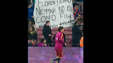 "Florentino pesao', Neymar no es como Figo", se leía en una tela desplegada en una de las tribunas del estadio Camp Nou.