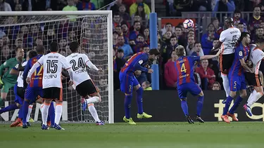 Fue así que se llegó la sorpresa en el Camp Nou. El valencia se puso arriba en el marcador a través de Mangala que superó a Ter Stegen con un testarazo en la salida de un córner a los 30 minutos.