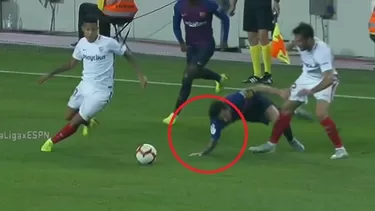 Messi tuvo que retirarse del campo tras un encontronazo con su compatriota del Sevilla Franco 'Mudo' Vázquez, al caer en mala posición sobre su brazo derecho en el minuto 17, tras lo cual se agarró el codo de esa extremidad, mientras se retorcía de dolor en el césped.