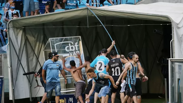 Tras la derrota, la hinchada de Gremio invadió la cancha y rompió varios equipamientos de los fotógrafos que estaban en su local, además de destruir la cabina del videoarbitraje (VAR).