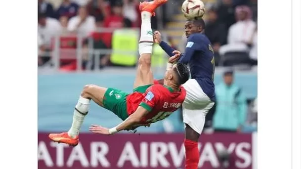 Jawad El-Yamiq, defensa marroquí del Real Valladolid de la Primera División de España, estuvo cerca de anotarle a Francia en la semifinal del Mundial de Qatar 2022 luego de una impresionante pirueta en el aire.