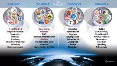 Champions League: estos son los 32 clasificados repartido en cuatro bombos