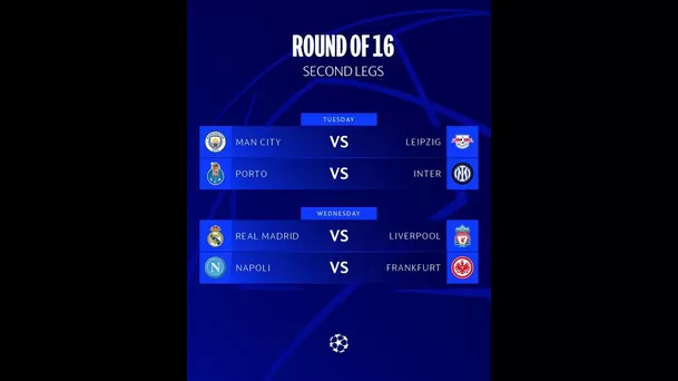 - Programación de la vuelta de octavos de la Champions League (hora peruana):