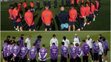 Los jugadores del Barcelona y Real Madrid se reunieron en círculo justo antes del inicio del entrenamiento de este martes.