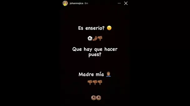 “Fue un error haberme dejado llevar emocionalmente por la frustración personal de no ser convocado. Reconozco que no es la manera ni el contenido apropiado para expresarme”, añade Johan Mojica, quien asegura que para él siempre será “un orgullo y un gran honor” representar a su país. EFE