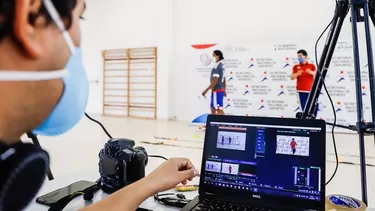 Mientras Espínola y Medina graban sus clases, su entrenador y técnico deportivo de la SND, Marcos Coronel, el "profe" del que hablaba Espínola, les observa.