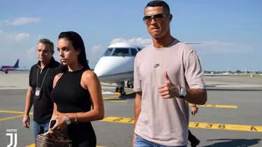 Juventus publicó la primera foto de Cristiano Ronaldo en territorio italiano ya como jugador bianconero. El flamante refuerzo de la 'Juve' llegó a Turín acompañado de su novia la modela Georgina Rodríguez.