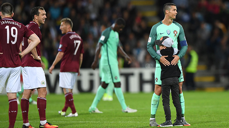 Antes de finalizar el encuentro, exactamente al minuto 89, un niño se metió a la cancha para abrazar a su ídolo: Cristiano Ronaldo. El pequeño lo abrazó y el portugués jugueteó con él y su gorra mientras se tomaban un selfie.