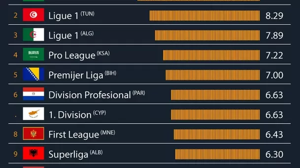 La lista la elaboró el CIES (Observatorio de Fútbol del Centro Internacional de Estudios Deportivos) con las 84 divisiones más importantes del planeta.