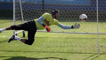 El portero de Sporting Cristal ya está recuperado del golpe que recibió en el partido contra Universitario y trabaja con un protector en la cabeza.