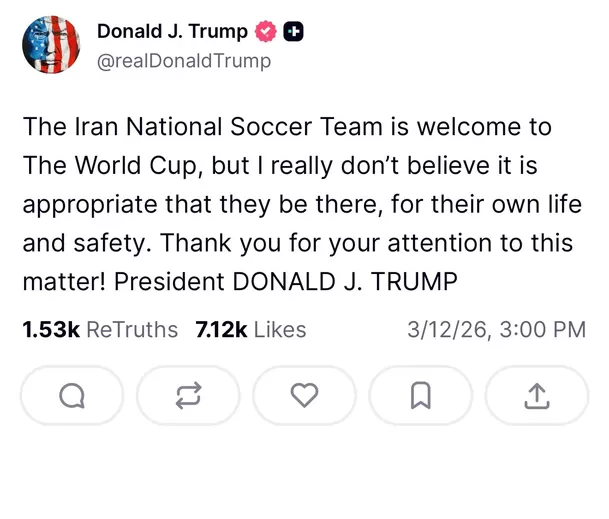 El mandatario se pronunció a través de su red social Truth Social, donde dejó clara su posición respecto a la presencia del equipo asiático en la Copa del Mundo. "La selección nacional de fútbol de Irán es bienvenida al Mundial, pero realmente no creo que sea apropiado que estén allí, por su propia seguridad", escribió.