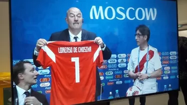 El técnico de Rusia levantó una camiseta que decía ‘Lorenso de Chosica’, la cual estaba firmada por todos su jugadores, y explicó que el peruano fue el único que confió en él. “Él predijo desde hace mucho que íbamos a llegar lejos”, dijo Stanislav Cherchésov.