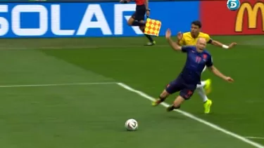 Corría el primer minuto de juego en el Estadio Nacional de Brasilia, un jalón de Thiago Silva a Arjen Robben fue cobrado como penal por el árbitro de nacionalidad argelina Djamel Haimoudi.