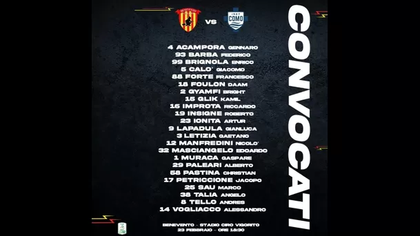 ¡Vuelve el 'Bambino'! Gianluca Lapadula fue convocado para el partido que disputará el Benevento Calcio ante el Como, a desarrollarse este miércoles 22 de febrero por la fecha 25 de la Serie B.