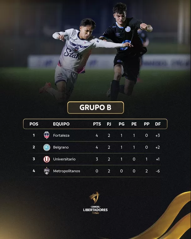 Con tres puntos en el Grupo B, Universitario se encuentra en la tercera posición, solo por detrás de Fortaleza (4 pts, +3) y Belgrano (4 pts, +2). Para clasificar a semifinales, los cremas necesitan vencer al cuadro brasileño y esperar que los argentinos no sumen una victoria ante Metropolitanos.