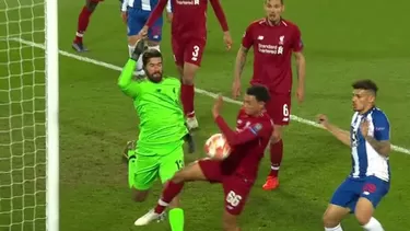 Alisson, arquero del Liverpool, se equivocó en despejar y la pelota rebotó en el brazo de Trent Alexander-Arnold, lo que provocó el reclamo del Porto. El árbitro español Antonio Mateu Lahoz consultó al VAR, y tras la información recibida decidió no cobrar penal.