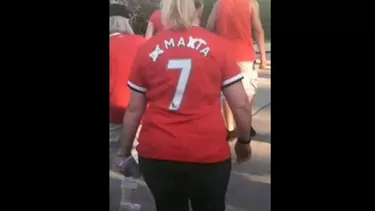 Antes del debut de los 'Red Devils' en la Premier League, la fanática llegó a Old Trafford con el número 7 que usaba Di María, pero le cambió el nombre para que al final se lea Mata en relación al volante español que a diferencia del argentino sí continúa en el club de Van Gaal.