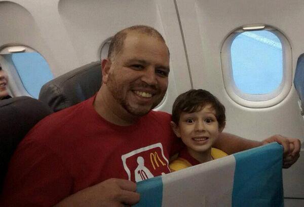 Agustín "vino feliz y tranquilo, junto a su padre, Raúl Illescas, quien nos manifestó que en ningún momento su hijo se sintió triste, sino estaba muy contento", comentó Carmen López, del área de mercadeo de una transnacional de comida rápida que pagó el viaje.